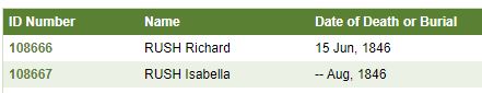 The newly widowed Cecilia Rodgers must have met Richard Rush soon after his arrival in Wellington, and they were married sometime in 1841, since their first daughter Sarah Ann Maria was born on 13 January 1842. Three more daughters were born to Richard and Cecilia between 1843 and 1846 - Cecilia, Isabella and Anne. Isabella, the third daughter, born on 1st August 1845, died shortly after Richard at the age of one from "teething complications".